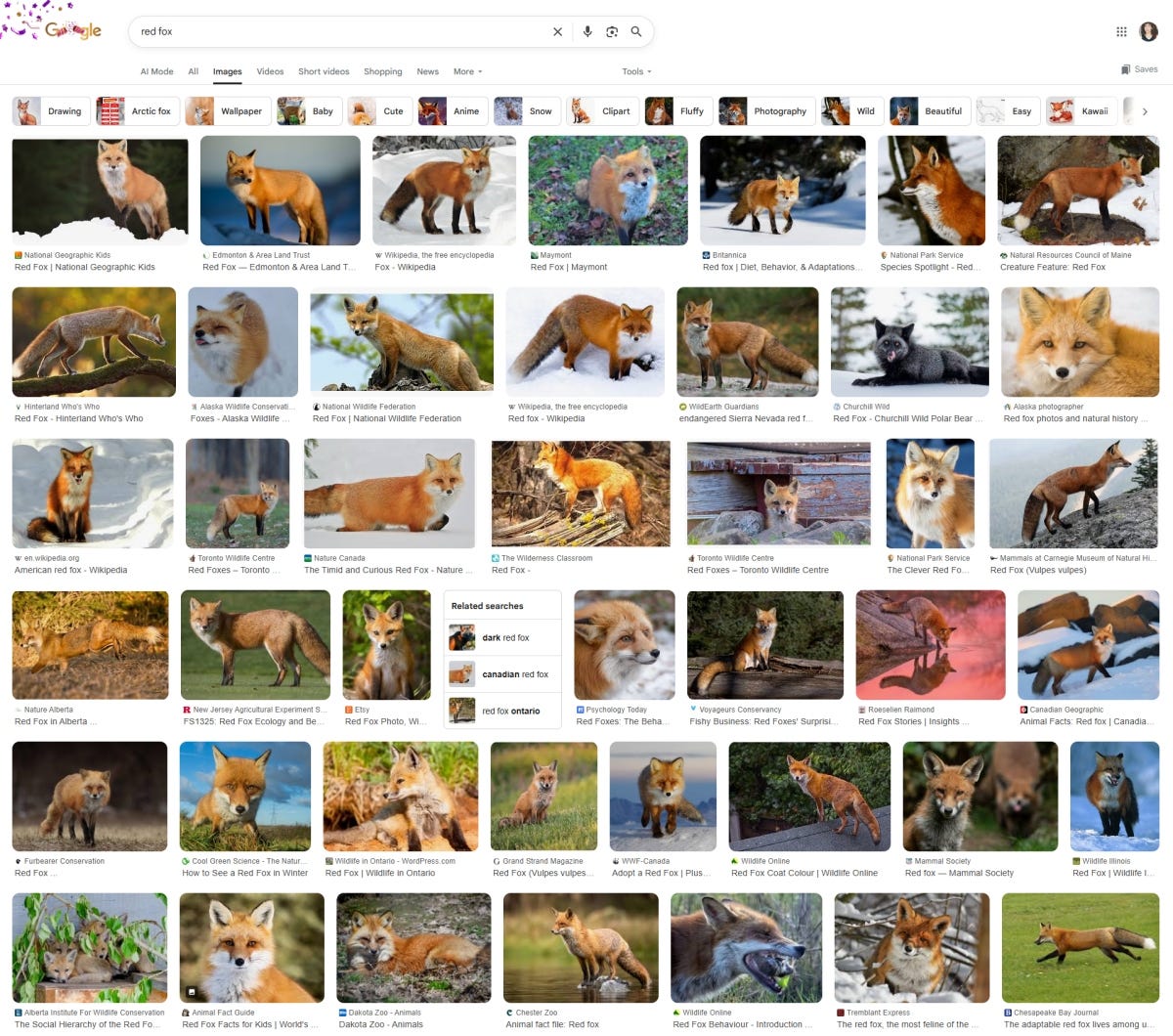 Most of the “training” in AI image generation is understanding the words people type into their prompts. Here’s a really simple beginning. Go to Google images and search red fox. You’ll see something like this...